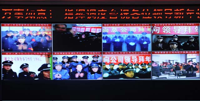 2014年元月31日大年初一早晨7時28分,公司總經(jīng)理婁伯翱、副總經(jīng)理王克、徐文剛以及公司黨總支委員、公司各部負(fù)責(zé)人一起慰問了執(zhí)行任務(wù)的武裝押運(yùn)員,婁伯翱總經(jīng)理代表黨總支向大家拜年并致以節(jié)日的問候和祝福。隨后,公司領(lǐng)導(dǎo)來到公司指揮調(diào)度中心,通過互聯(lián)網(wǎng)視頻連線,代表總公司黨總支慰問了駐外分公司駐浙江慈溪、上海青清、山東濱州、南京大唐、鎮(zhèn)江等地駐外保安隊伍,向他們致以新春的祝福!