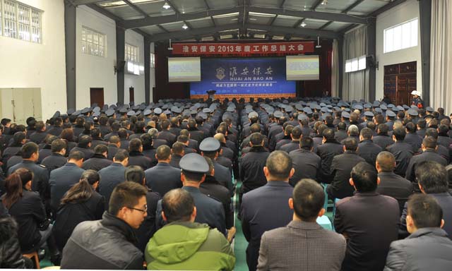 會議內(nèi)容和安排一切從簡,有四項(xiàng)議程,一是播放年度總結(jié)PPT文件,二是宣讀表彰人員名單,三是部門遞交責(zé)任狀,最后總經(jīng)理婁伯翱講話。押運(yùn)大隊(duì)市區(qū)押運(yùn)員和駐各縣隊(duì)員代表;機(jī)關(guān)各部門人員以及各分公司員工代表近700人參加了會議。
