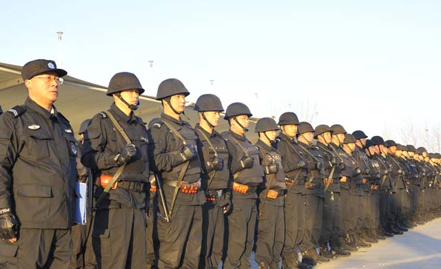 2月19日(大年初一)早晨7時(shí)30分,淮安市副市長、市公安局局長宮文飛和市局黨委副書記、副局長初曉、副局長唐衛(wèi)東、指揮中心主任鮑鶴兵等領(lǐng)導(dǎo)來到總公司,在公司總經(jīng)理婁伯翱、副總經(jīng)理王克、徐文剛陪同下,親切慰問了整裝待發(fā)的武裝押運(yùn)隊(duì)員和公司副中隊(duì)長以上管理人員。