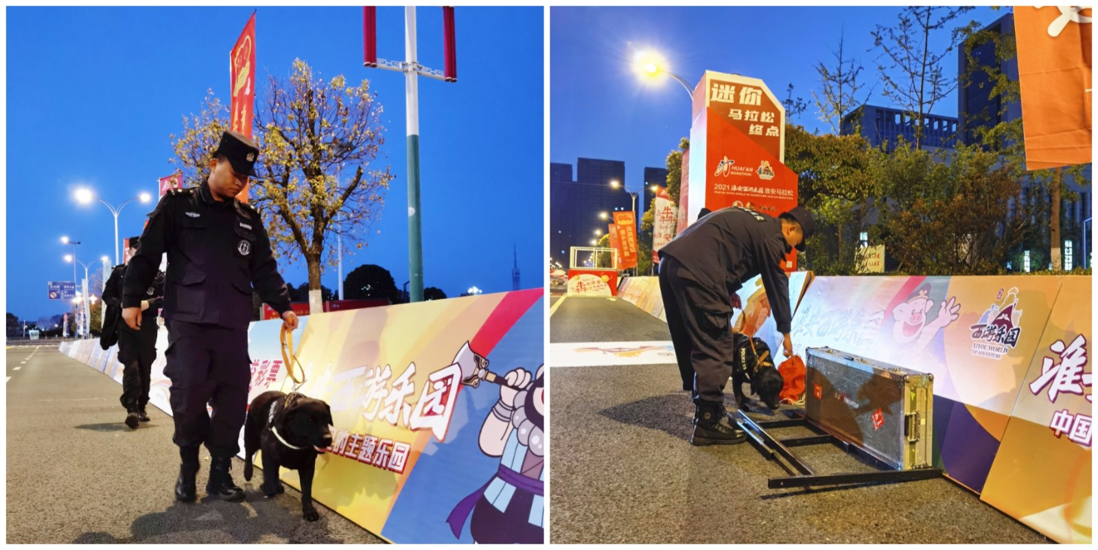 協(xié)助公安部門對馬拉松沿線組織警犬巡邏、搜毒搜爆,確保賽道起終點及沿途的安全。