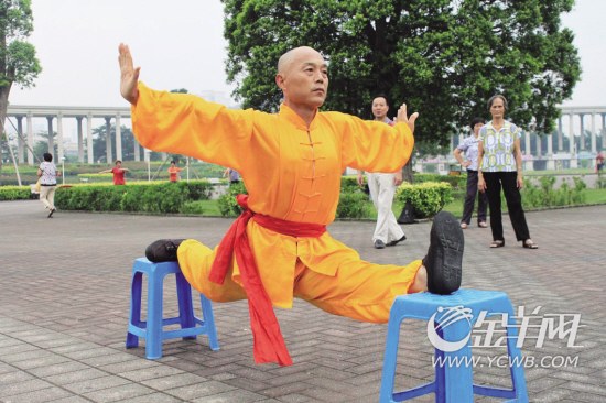 “農(nóng)民工組合”中的武者張中心來(lái)自河南孟州,體魄結(jié)實(shí),剃著光頭,頗有點(diǎn)少林寺武僧的范兒。張中心告訴記者,自己出生在有著“武術(shù)之鄉(xiāng)”之稱的孟州化工鎮(zhèn),從小就對(duì)武術(shù)癡迷。與王文正一樣,張中心同樣從小家境貧寒,早年父親得了精神病,家里沒(méi)了頂梁柱,張中心也是小學(xué)沒(méi)畢業(yè)便輟學(xué)了,兄妹三人都是母親一人拉扯大。由于父親精神病發(fā)作,出去惹了不少事,遭到了鄰居的不解和謾罵,兄妹幾個(gè)也常被欺負(fù),于是張中心暗下決心,學(xué)好武術(shù),保護(hù)家人不被欺負(fù)。說(shuō)到這,張中心覺(jué)得自己走上習(xí)武之路的初衷有些偏頗,“習(xí)武之人不可為一己之私,以怨報(bào)怨,有違武術(shù)之道,所以現(xiàn)在打算免費(fèi)傳授一些武術(shù)給大家,當(dāng)做健身之道?!?/SPAN>