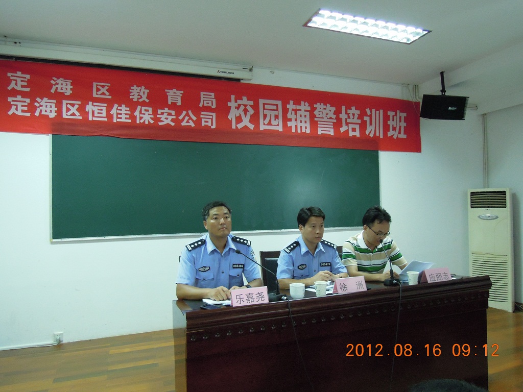 8月16日上午,定海區(qū)恒佳保安公司、區(qū)教育局校園輔警(保安隊(duì)長)共115名培訓(xùn)班開班儀式在舟山人民警察學(xué)校舉行,分局副局長徐洲、區(qū)教育局副局長應(yīng)朋志作開訓(xùn)動(dòng)員。本次培訓(xùn)為期3天,實(shí)行軍事化封閉式管理,主要學(xué)習(xí)各種法律知識、業(yè)務(wù)技能及軍體訓(xùn)練。通過此次培訓(xùn),旨在進(jìn)步一增強(qiáng)校園輔警的安全意識,努力提高校園輔警的安保技能。
