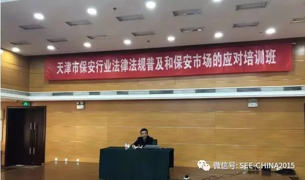 隨后,天津市公安局保安業(yè)監(jiān)管處法制辦周俐攻主任從四個方面講解了《保安從業(yè)企業(yè)法律法規(guī)普及》的相關知識。解析了保安服務的概論,說明了《保安服務管理條例》的指導思想和特點、給保安服務企業(yè)帶來了啟示和機遇。希望保安企業(yè)和保安員們認真學***家的法律法規(guī),以提高自身知法守法的自覺性,提升自己的法律水平,充分運用法律武器保護自己的合法權益,同時善于使用法律武器維護社會治安秩序,保護客戶的人身和財產不受非法侵害,真正成為知法懂法,遵紀守法,勇于護法的專業(yè)化、職業(yè)化的保安隊伍。