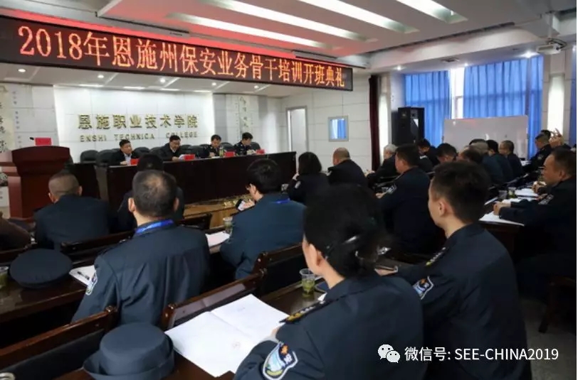 提升恩施州保安業(yè)服務(wù)水平,提高保安人員的安全意識(shí)、服務(wù)意識(shí)、業(yè)務(wù)能力,11月26日,恩施州保安業(yè)務(wù)骨干培訓(xùn)開班典禮在恩施職業(yè)技術(shù)學(xué)院舉行。恩施州人民政府副州長孔發(fā)階,恩施職業(yè)技術(shù)學(xué)院黨委書記戴清堂,湖北省公安廳內(nèi)保總隊(duì)支隊(duì)長肖拙出席開班典禮。
