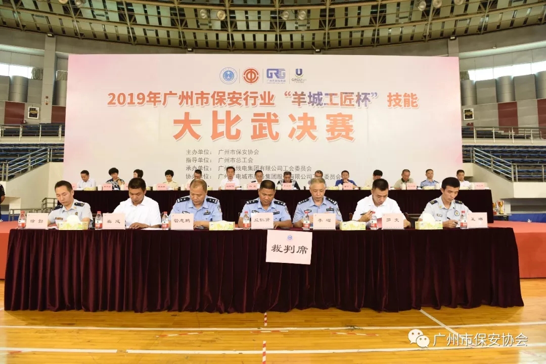 為提升廣州保安隊伍實戰(zhàn)水平和安全防范能力,激發(fā)廣大保安員的工作熱情,動員號召全市保安企業(yè)和廣大保安員積極投身服務新中國成立70周年安保工作。在廣州市公安局治安管理支隊、廣州市總工會的指導下,8月21日下午14時,由廣州市保安協(xié)會主辦、廣州無線電集團有限公司工會委員會承辦、廣州廣電城市服務集團股份有限公司工會委員會協(xié)辦的2019年廣州市保安行業(yè)“羊城工匠杯”技能大比武活動在廣州中醫(yī)藥大學體育館(大學城校區(qū))順利舉行。