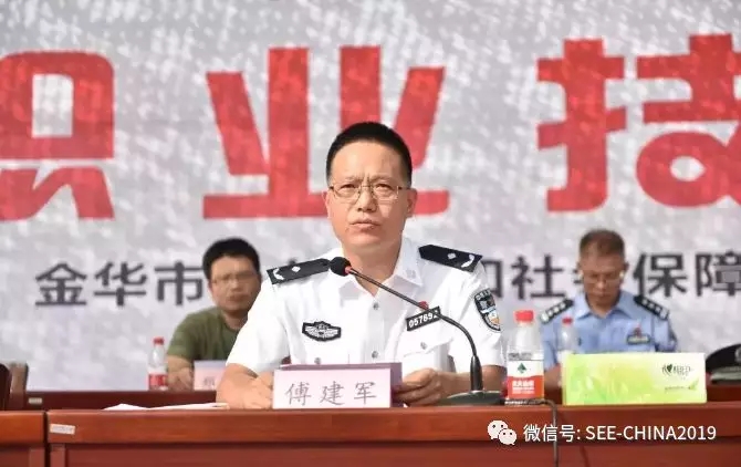 浙江省公安廳治安監(jiān)督管理總隊副總隊長朱健輝,金華市公安局黨委委員、副局長傅建軍,金華市人力資源和社會保障局黨組成員邵森寅出席開幕式并講話。金華市總工會副主席張永積出席開幕式。開幕式上全體保安員進行“保安勇?lián)?dāng)·平安迎大慶”集體宣誓。