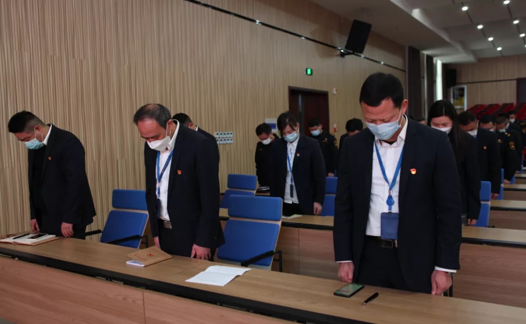 伴隨著低沉的哀樂(lè)聲,70多名公司黨員、團(tuán)員一一上臺(tái),向線上英雄紀(jì)念碑敬獻(xiàn)電子花圈,向英烈們默哀,寄托深深緬懷之情。
