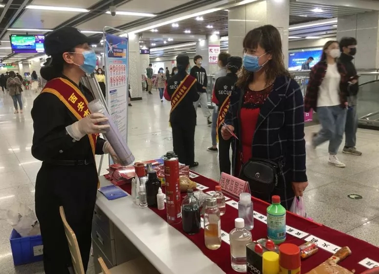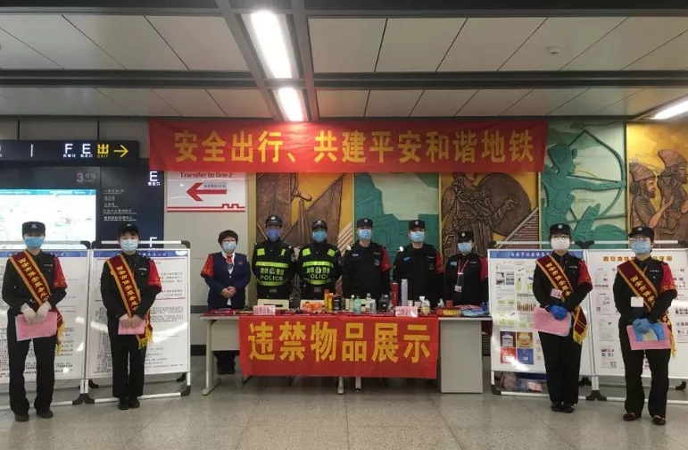 為深入貫徹落實習(xí)近平總書記的總體國家安全觀,落實國家、省級、市級反恐辦關(guān)于“切實增強全民國家安全意識,不斷提高人民群眾維護國家安全能力”為主要內(nèi)容的反恐怖宣傳教育,同時加強對疫情期間進站乘車人員的防護保障措施,保障所有出行乘客的人身及生命財產(chǎn)安全,按照西安軌道交通集團有限公司工作部署安排,結(jié)合“4·15全民國家安全教育日”和掃黑除惡宣傳,貫徹落實分公司決定在全線網(wǎng)范圍開展為期一周的反恐怖普法宣傳教育活動和疫情防控相關(guān)知識宣傳講解,4月15日,西安市保安服務(wù)總公司、西安地鐵運營分公司、公安地鐵分局韋曲南派出所在西安地鐵二號線小寨站,按照運營一中心下發(fā)的“關(guān)于反恐怖普法宣傳教育活動計劃”,開展違禁品展示宣傳專項活動的通知”,聯(lián)合開展“安全出行、共建平安和諧地鐵”,“警民牽手110違禁品宣傳”“2020年新冠疫情防控”等宣傳教育活動。