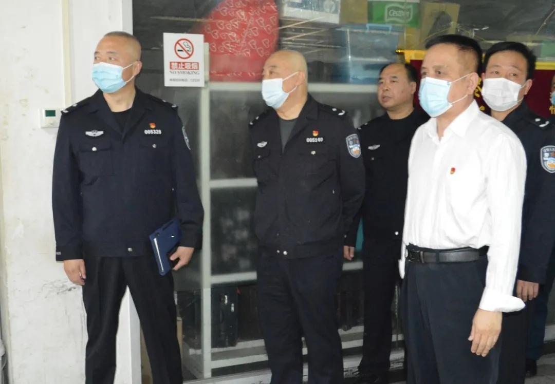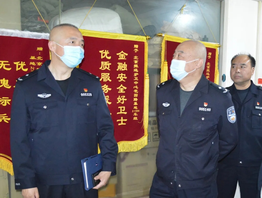 4月28日,北京市公安局內(nèi)部單位保衛(wèi)局副局長魏民在北京振遠護衛(wèi)中心總經(jīng)理楊新平、北京開遠保安公司經(jīng)理劉伯元、文安保安公司經(jīng)理郝宗芬的陪同下,來到振遠第十二支隊花園路基地檢查指導(dǎo)疫情防控工作,并看望慰問基地一線押運隊員。