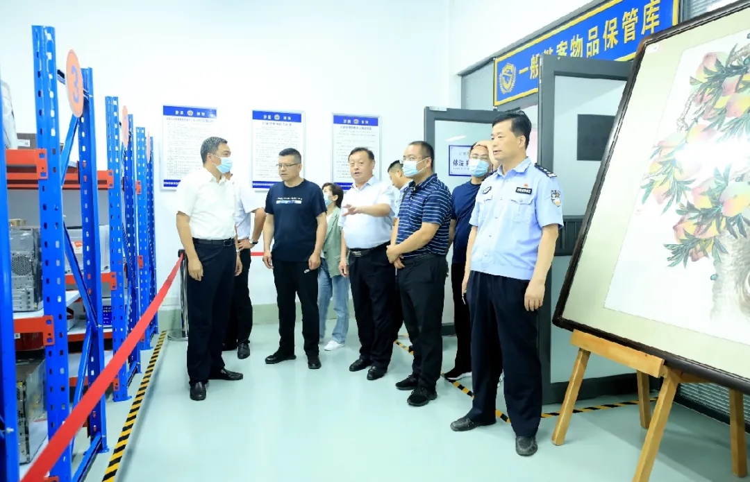 馬生海支隊(duì)長(zhǎng)一行認(rèn)真聽取了涉案財(cái)物管理中心建設(shè)背景情況介紹,觀看了涉案財(cái)物一體化管理宣傳片。實(shí)地考察了管理中心各類涉案財(cái)物保管庫房和涉案車輛保管區(qū)。
