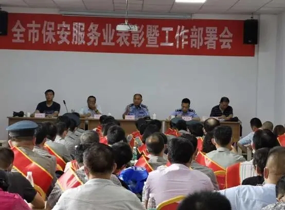 近日,馬鞍山市公安局保安管理支隊、市保安行業(yè)協(xié)會在金江保安學校召開全市保安管理暨表彰工作會議,表彰獎勵2019年表現(xiàn)優(yōu)秀的保安公司和保安員并部署下半年保安管理工作。保安管理支隊全體民警、市保安協(xié)會負責人、全市保安從業(yè)單位負責人及獲獎代表等100余人參加了這次會議。