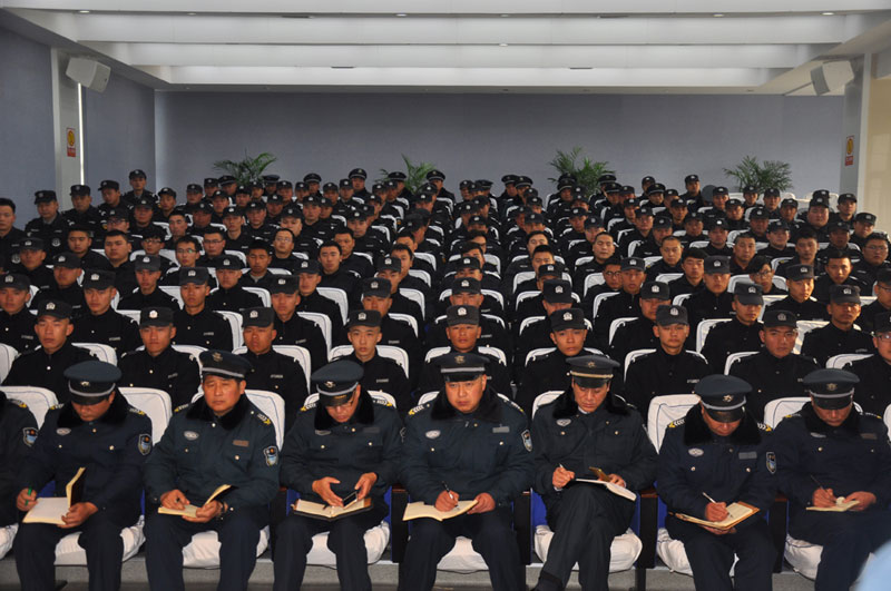 2017年12月7日下午14:30,淮安保安精選出的150名特勤隊員在總公司會議室參加赴國展中心安保動員大會,人防中心王錦春總監(jiān)代表總公司在主席團發(fā)表動員令,此次項目帶隊領(lǐng)導大隊長孫茂林等在主席臺就坐。