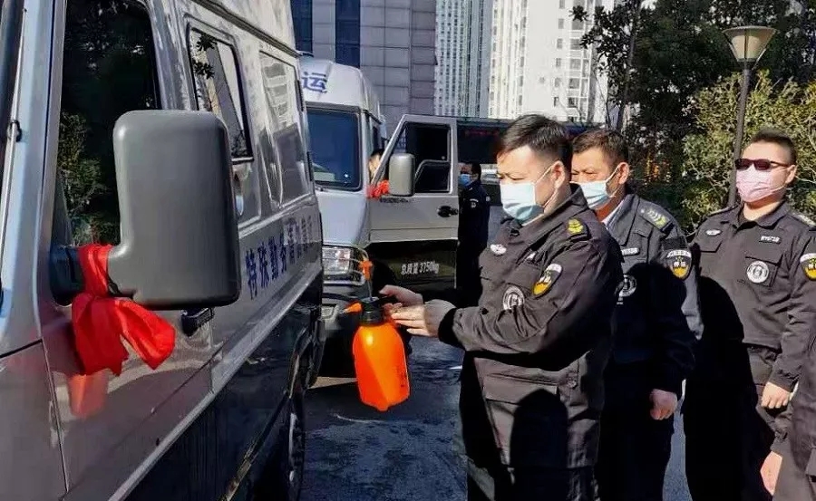 押運隊伍在出車前和返回公司后,加強對個人裝備和運鈔車的消毒工作,并安排專人每日對押運裝備和押運辦公場所進(jìn)行消毒,確保押運過程零傳染。